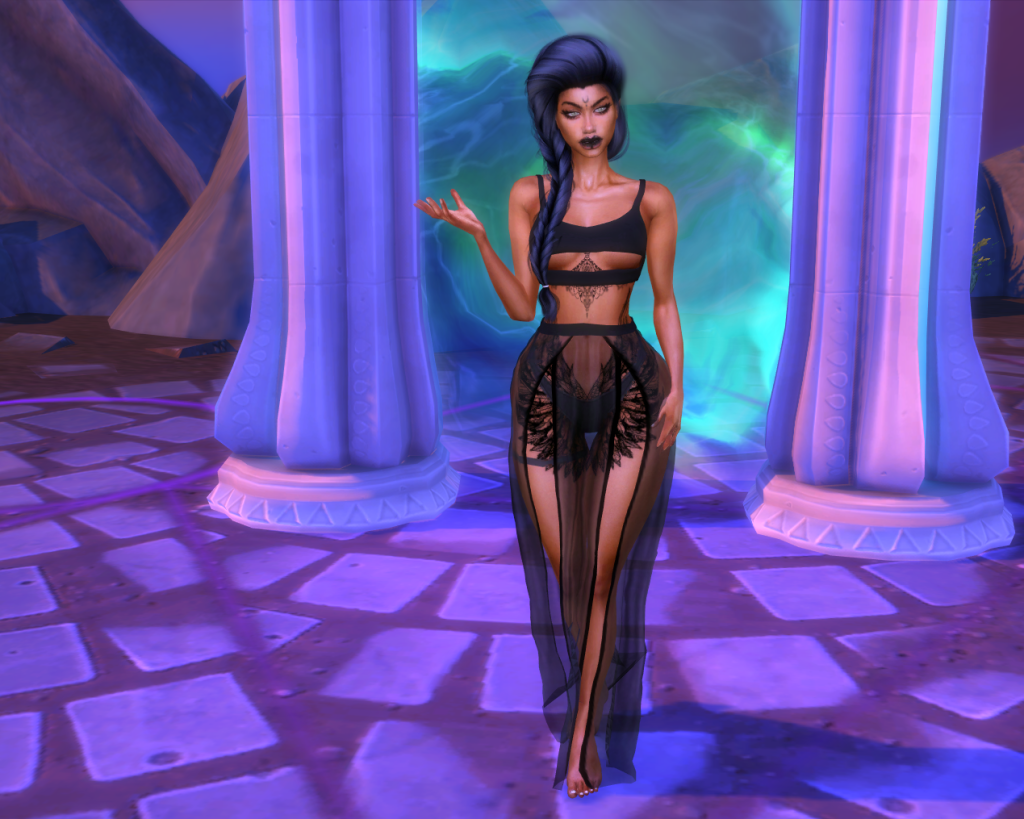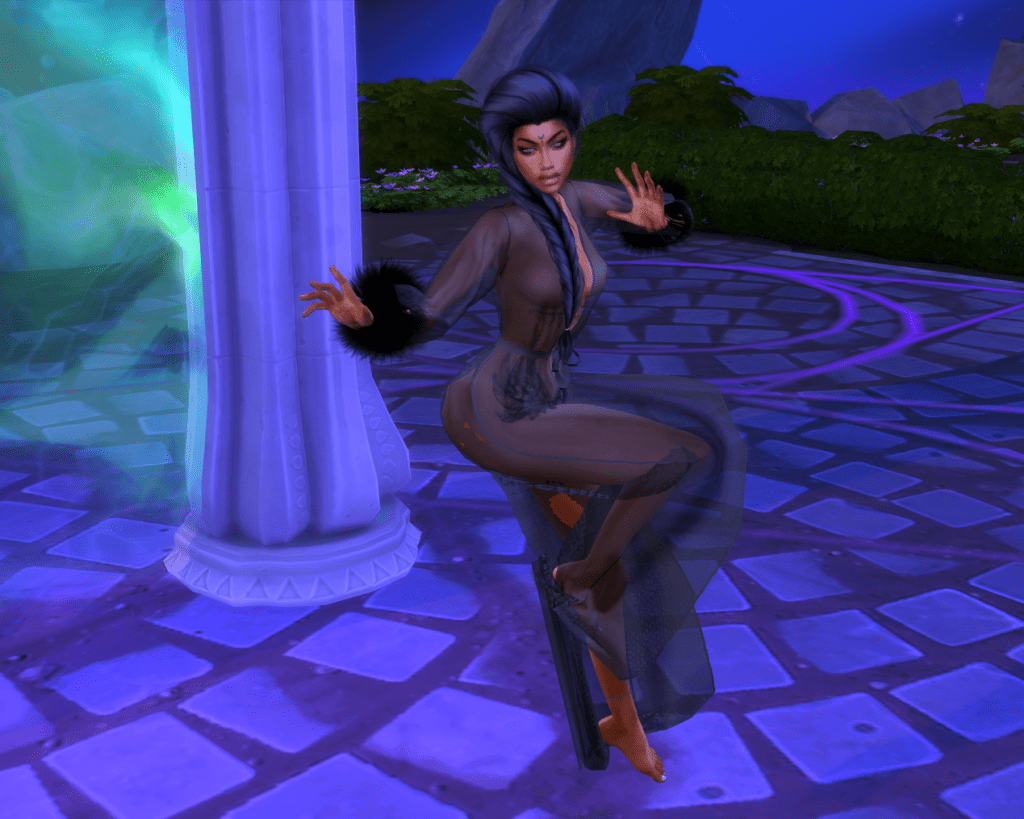 Tamina comes with all of the clothes, skin, and custom content displayed in the pictures. I have all the stuff, expansions, kits, and game packs so understand that if you do not have Seasons and/or University some items will not appear. Big THANKS to all of various content creators for their CCs. Enjoy!