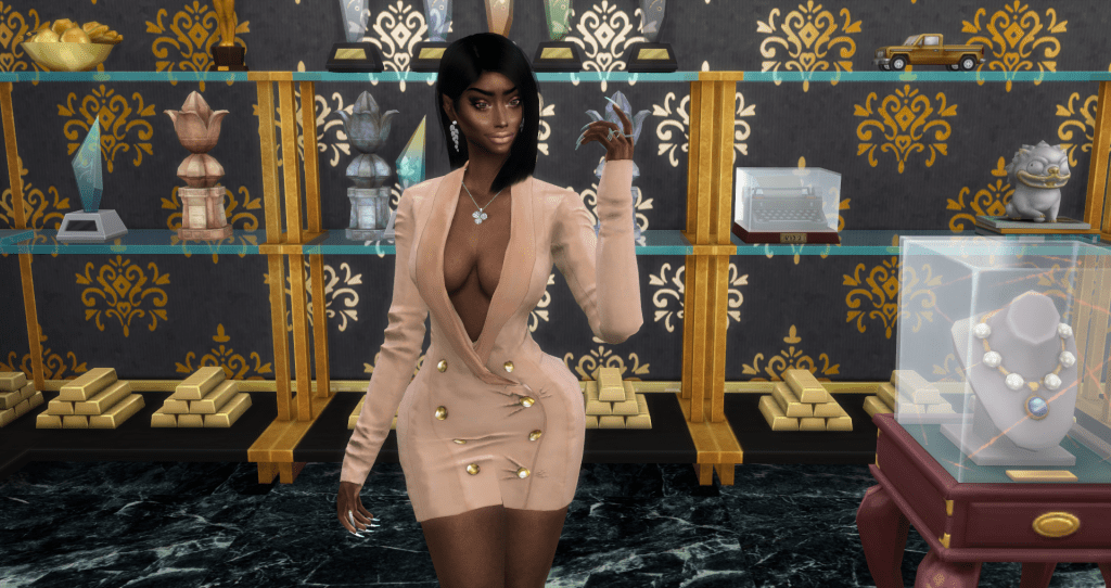 Meredith comes with all of the clothes, skin, and custom content displayed in the pictures. Big THANKS to all of various content creators for their amazing fashions, hair, and accessories. Enjoy!